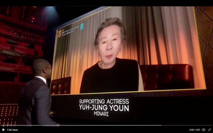 영국 아카데미상 시상식에서 배우 윤여정 님이 미나리로 최우수 여우 조연상을 수상했습니다.