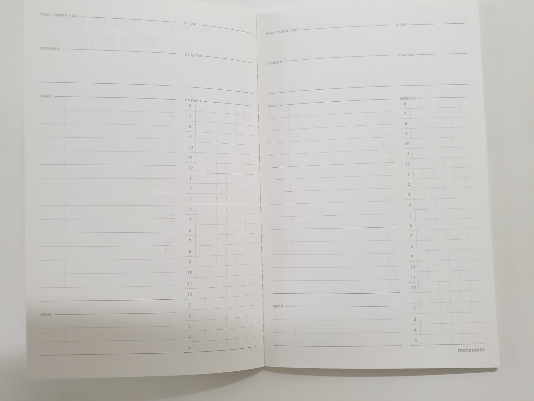 모트모트 텐미닛 플래너에는 계획한 일을 몇 분 동안 했는지 기록하는 용도인 것 같습니다.